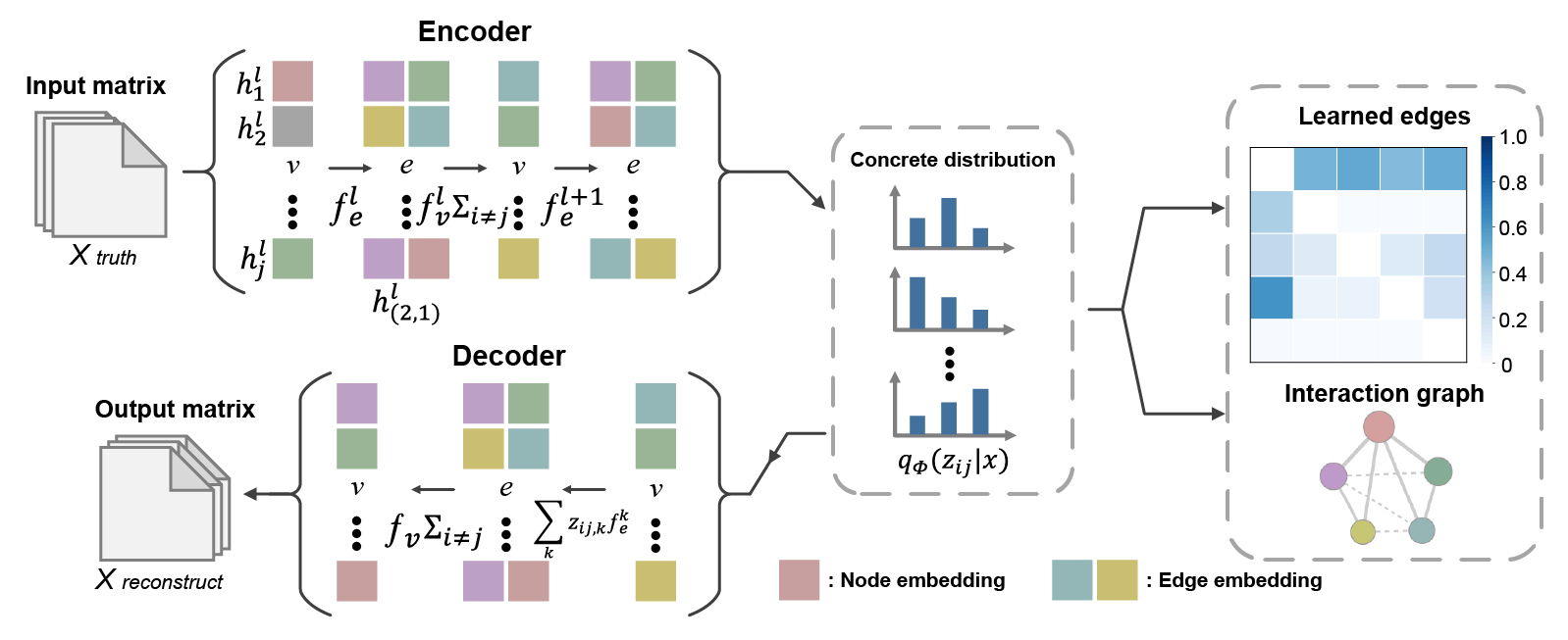 365英国上市集团韩葳葳教授、美国密苏里大学电气工程和计算机科学系许东教授科研团队提出一种高效、可操作性强的分子动力学模拟分析方法(NRI-MD),该方法首次将深度学习的图神经网络(GNN)运用于分子动力学模拟分析,基于模拟轨迹的原子速度和位置数据,通过神经关系推理模型(NRI)直接推断出酶分子动力学模拟中残基的相互作用模式,推断出酶的别构调控路径以及氨基酸突变后相对自由能的变化。NRI-MD模型的提出为蛋白质(酶)结构-功能研究领域提供了一种新构架,有望开辟酶分子设计的新模式。研究成果于2022年03月29日在学术期刊《Nature Communications》正式发表(Neural relational inference to learn long-range allosteric interactions in proteins from molecular dynamics simulations)。论文第一完成单位为365英国上市集团,365英国上市集团朱镜璇博士和密苏里大学计算机科学系王珏鑫博士为该论文的共同第一作者,365英国上市集团韩葳葳教授和密苏里大学许东教授为该论文的共同通讯作者。
