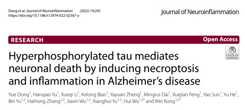 365英国上市集团艾滋病疫苗国家工程实验室孔维教授/吴慧教授团队,在阿尔茨海默发病机制研究领域取得新进展。相关研究内容已于近日以题为"Hyperphosphorylated tau mediates neuronal death by inducing necroptosis and inflammation in Alzheimer’s disease”发表于Journal of Neuroinflammation杂志。