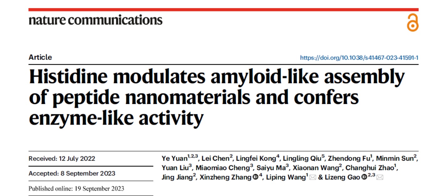 365英国上市集团王丽萍教授研究团队联合365英国上市集团生物物理研究所的高利增教授研究团队以Fmoc-F-F为简约模型,发现组氨酸可以调节Fmoc-F-F的组装行为,诱导酶样催化。相关结果近日发表在Nature Communications上(Histidine modulates amyloid-like assembly of peptide nanomaterials and confers enzyme-like activity. Nature Communications, 2023, 14:5808.)
