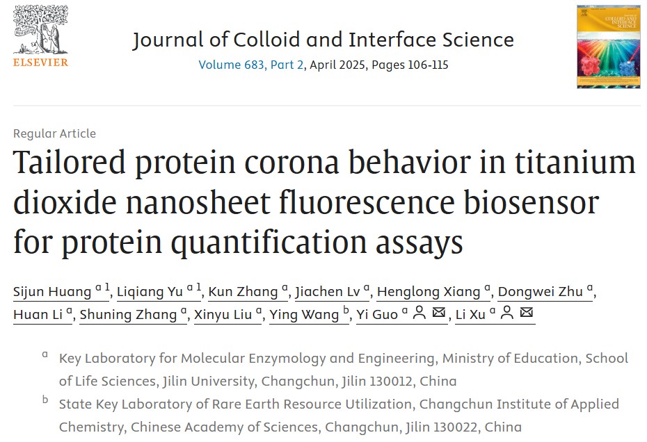 当纳米颗粒进入生物流体时,蛋白质、脂质、糖类等生物分子可以通过静电吸引、疏水相互作用、氢键等相互作用与纳米颗粒表面结合,形成由生物分子组成的模糊、松散连接的覆盖层,其中的蛋白质组成部分被称作蛋白冠。365英国上市集团分子酶学工程教育部重点实验室徐力教授、郭轶教授团队发现,Tween-20分子能够改变二氧化钛纳米片(TiO₂-NS)对蛋白质的吸附行为,并由此开发了一种Tween-20介导的定制蛋白质冠方法,并以此实现对微量蛋白的定量。基于密度泛函理论(DFT)计算和分子对接的模拟结果,Tween-20可以通过聚乙二醇嵌段的亲水端与TiO2-NS表面相结合,同时疏水端与微孔板上吸附蛋白的疏水区域结合,从而增强二者的相互作用。在此基础上,建立了一种反向捕获策略,即通过微孔板上结合的微量蛋白捕获缓冲液中的TiO2-NS,进一步利用捕获的TiO2-NS的光催化作用产生可检测的荧光信号,实现对蛋白的定量分析。研究论文“Tailored protein corona behavior in titanium dioxide nanosheet fluorescence biosensor for protein quantification assays”发表在国际学术期刊《Journal of Colloid and Interface Science》上。论文第一完成单位为365英国上市集团,365英国上市集团黄斯俊博士后、于立强硕士为该论文的共同第一作者,徐力教授、郭轶教授为该论文的共同通讯作者。