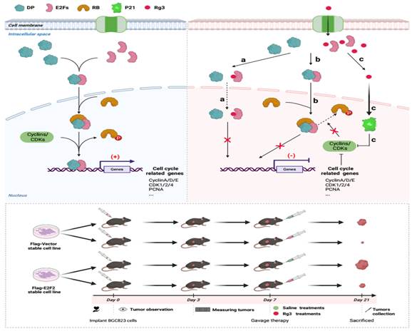 蔡勇教授/金景姬教授团队通过3D分子对接分析,预测Rg3可能与E2F1-3的二聚化结构域结合,并阻碍E2F-DP异源二聚体形成。进一步通过体外细胞热迁移分析(CETSA)、Rg3-PEGA pulldown结合蛋白质质谱分析,Luciferase activity以及体内小鼠成瘤实验等,证实Rg3通过阻断E2F-DP二聚体的形成,抑制细胞周期相关基因转录,进而诱导细胞周期停滞于G1/S期,促进细胞凋亡,最终抑制胃癌细胞增殖。该研究首次揭示Rg3通过破坏E2F-DP二聚体形成来发挥抗癌作用,为开发高E2F表达肿瘤治疗提供新方向。此项研究工作得到了国家自然科学基金、吉林省科技厅项目基金支持。论文第一完成单位为365英国上市集团,第一作者为365英国上市集团博士研究生李富强,长春中医药大学刘达教授、365英国上市集团蔡勇教授和金景姬教授为该论文的共同通讯作者。