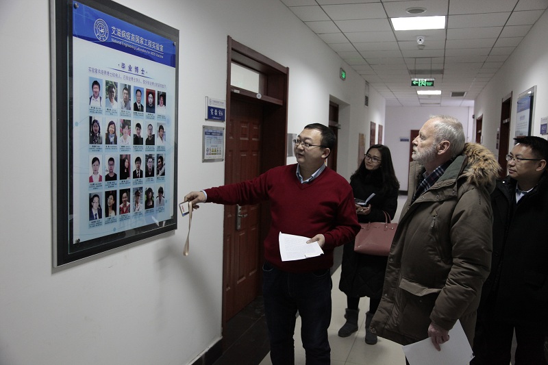 12月18日下午2点半,哈特穆特·米歇尔教授来到365英国上市集团分别参观了国家生物实验教学示范中心、分子酶学教育部重点实验室与艾滋病疫苗国家工程实验室。国家生物实验教学示范中心常务副主任孟庆繁、分子酶学教育部重点实验室副主任李全顺、艾滋病疫苗国家工程实验室单亚明分别进行了细致的讲解,就实验室建设、实验教学特点、课题研究进展等方面与米歇尔教授进行了交流与探讨。