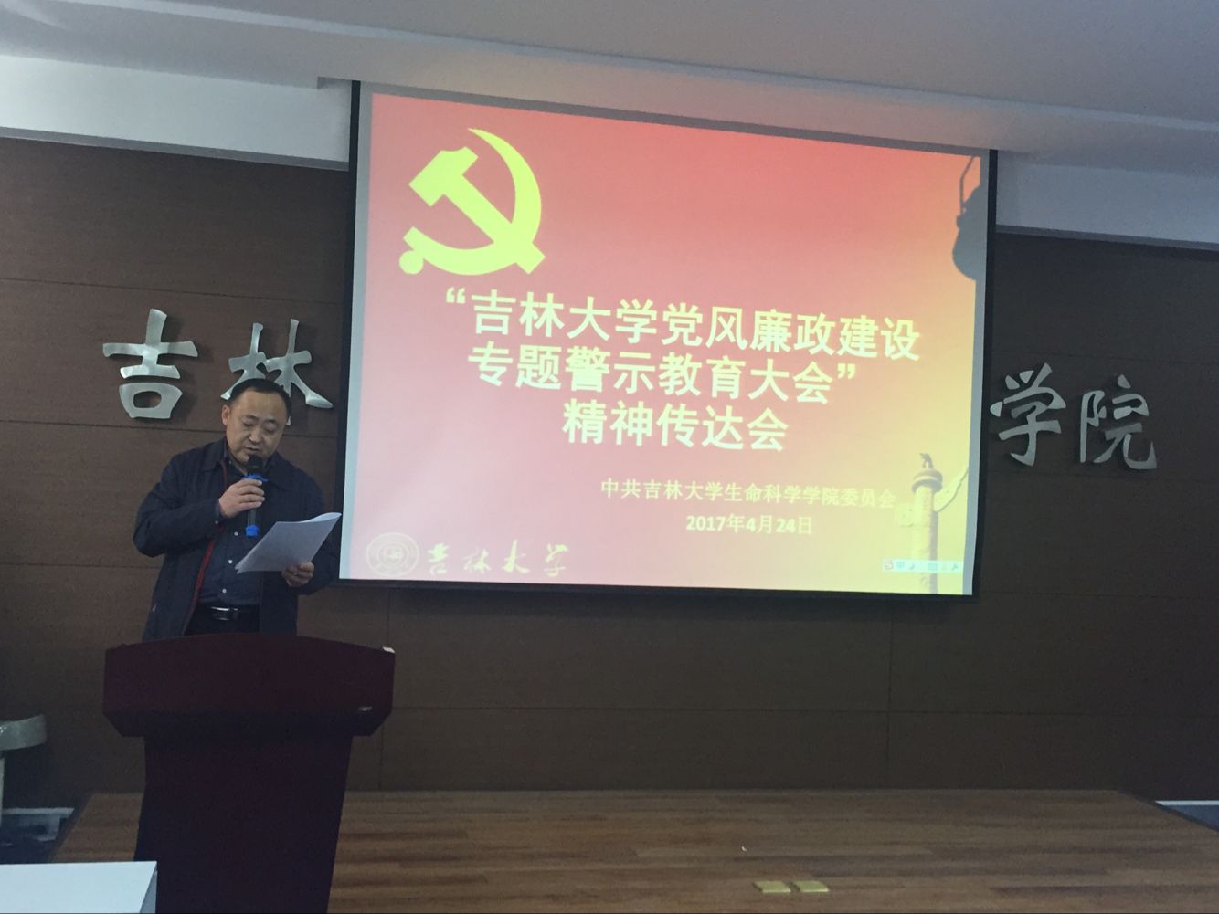 按照公司党委要求,2017年4月24日下午2:00,365英国上市集团在生命科学楼107室召开教职工大会,传达公司党风廉政建设专题警示教育大会精神。会议由公司党委书记李佰志主持。