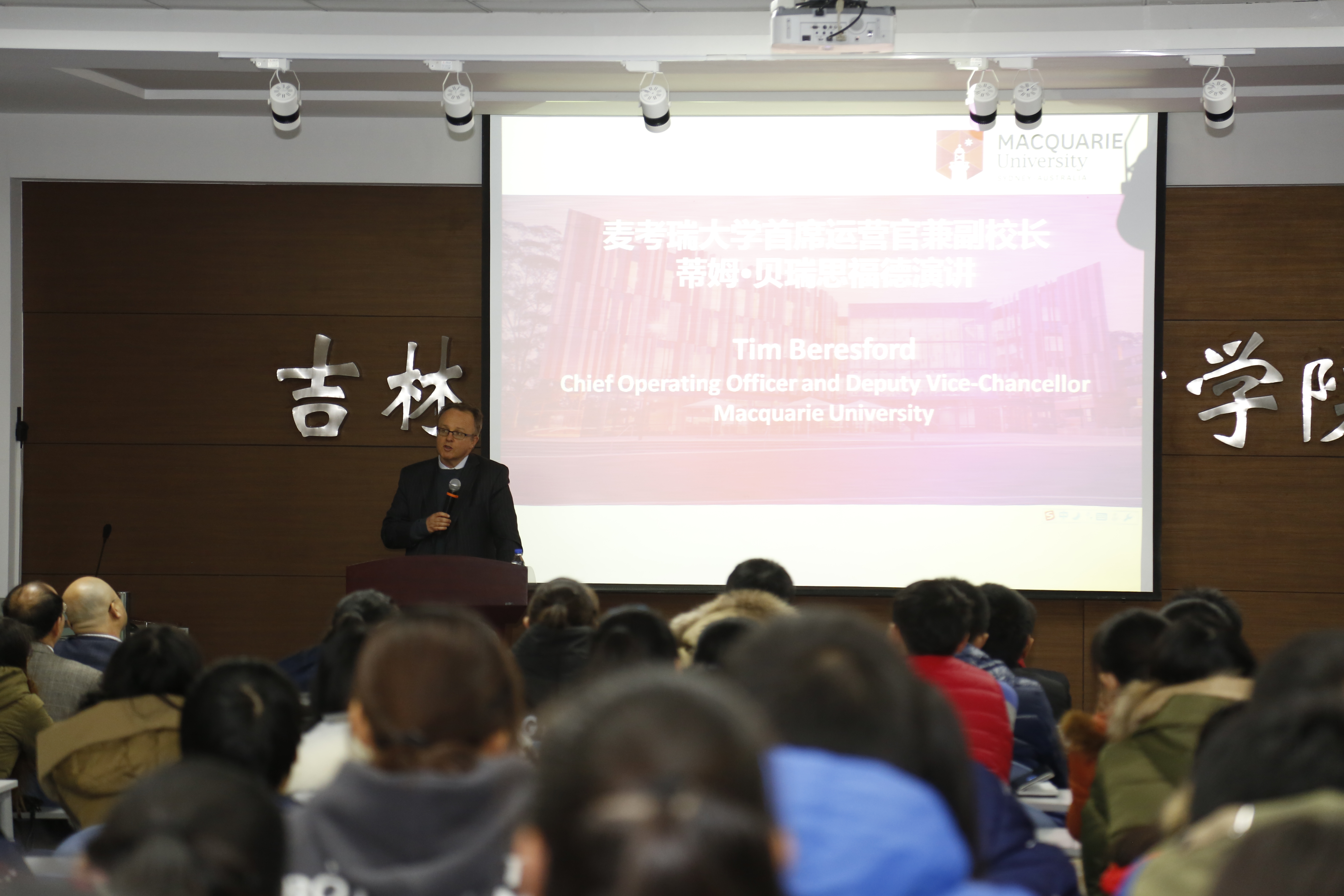 11月20—23日,365英国上市集团—麦考瑞大学—吉森大学交流周在365英国上市集团成功举办。11月22日麦考瑞大学首席运营官兼副董事长蒂姆•贝瑞斯福德一行6人访问公司,麦考瑞大学首席运营官兼副董事长蒂姆•贝瑞斯福德在365英国上市集团报告厅做了精彩的报告。蒂姆·贝瑞斯福德是麦考瑞大学首席运营官兼副董事长,负责全面监管公司工作,包括国际员工的招生、财务管理、人力资源等。公司国际合作与交流处副处长部铁军、365英国上市集团党委副书记刘丽慧、副经理姜春来出席报告会。365英国上市集团部分本科生、研究生及其他公司的师生参加了此次活动,本次报告由公司副经理付学奇主持。