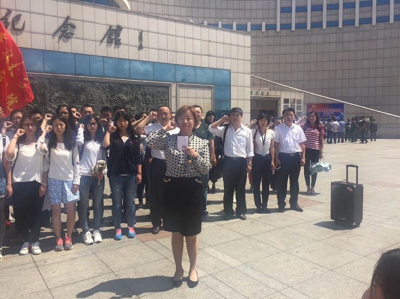 随后,公司师生党员们在纪念馆门前举行了建党95周年纪念仪式。仪式由赵国安副书记主持。伴随着激昂的国歌声,活动拉开帷幕。在刘丽慧副书记的带领下,师生党员举起右拳,面对鲜红的党旗庄严宣誓。员工新党员代表岳美廷同学对党组织的关心、培养和教育表示衷心的感谢,并承诺必将不辱党和国家赋予的使命,铭记历史、锐意进取,为建设中国特色社会主义社会贡献自己的力量。