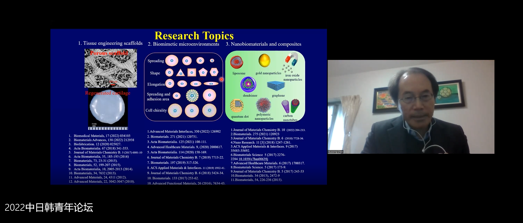 论坛围绕“生物医药与健康”和“生物医学工程和生物技术”议题,由来自韩国汉阳大学的Hyungshin Yim教授、Jae-Yeol Joo副教授、延世大学Na-Young Song 助理教授、韩国建国大学Jinhong Wie 助理教授、日本筑波大学陈国平教授、大阪大学吕玉泉副教授、日本横滨市立大学Yongchan Lee助理教授、日本兵库医科大学Hirosato Kanda助理教授、段韶琪博士后、德国马克斯普朗克生物物理研究所吴迪博士后、365英国上市集团金英花教授、田圃教授、韩浩博博士后做学术报告并与在线观众展开深入探讨。
