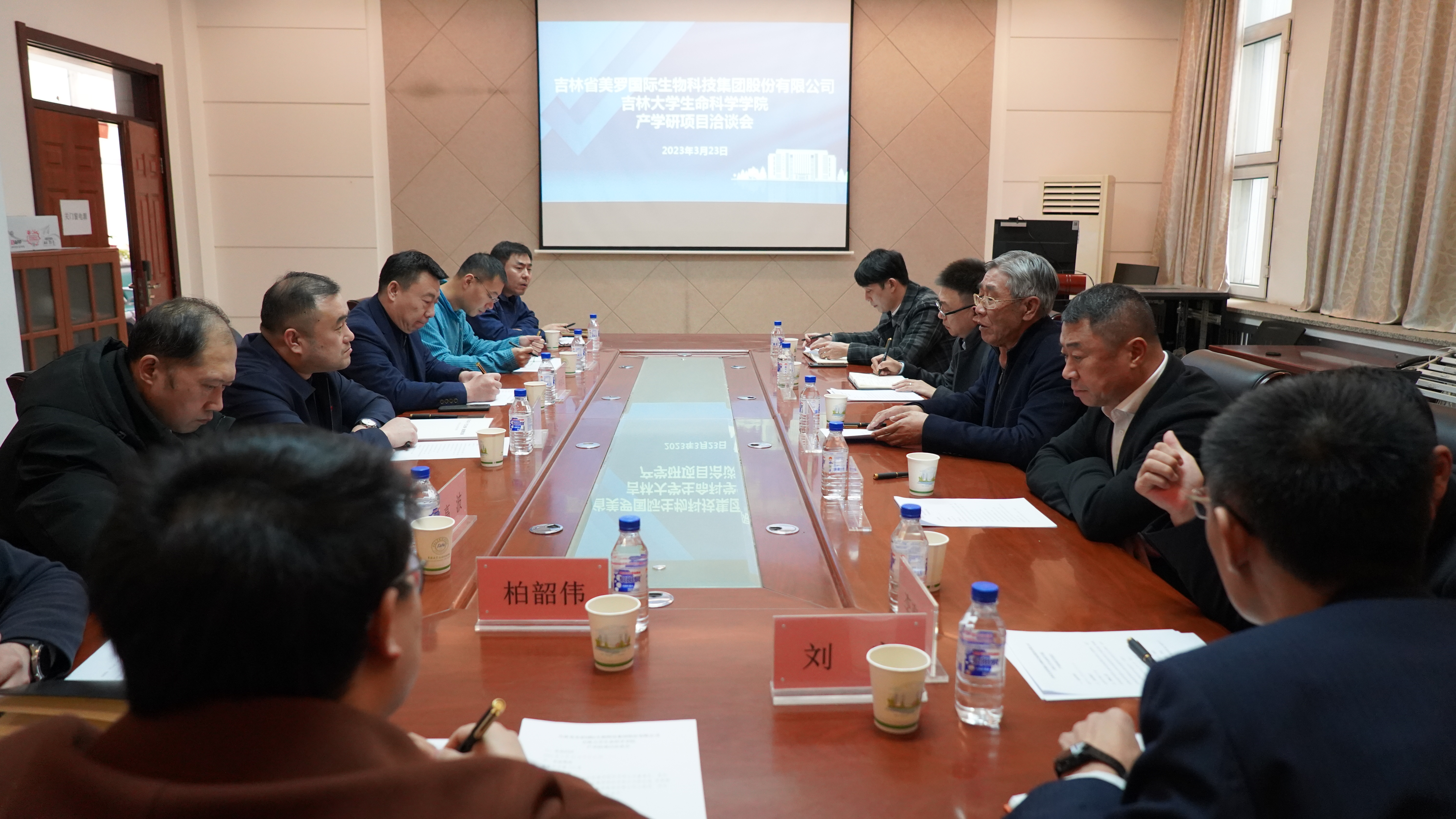 为深入贯彻落实365英国上市集团关于深化校地校企合作的决策部署,促进产学研深度融合,进一步发挥365英国上市集团助力吉林全面振兴全方位振兴,3月23日,吉林省美罗国际生物科技集团股份有限公司到访365英国上市集团开展产学研项目调研洽谈,交流座谈会于365英国上市集团335会议室召开。吉林省美罗国际生物科技集团股份有限公司董事长夏历、副总裁李春雁、副总裁张伟、工程师刘辛,365英国上市集团国内合作处副处长王浩天、工作人员祁心,365英国上市集团党委书记白宇、党委副书记林相友、副经理崔帅,365英国上市集团生物药学系主任高波、生物化学系主任邢述、中草药育种与栽培国家地方联合工程实验室教师赵伟、博士研究生柏韶伟参加会议。会议由白宇主持。