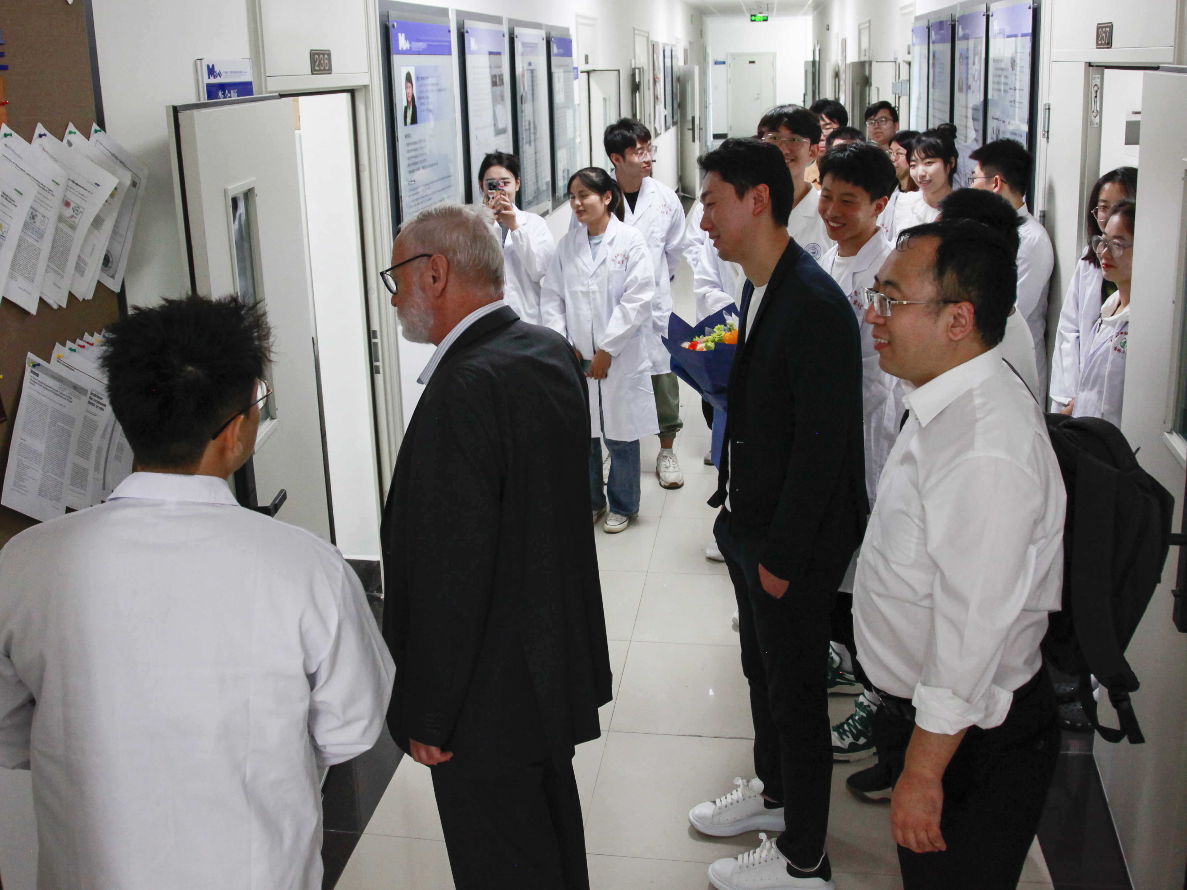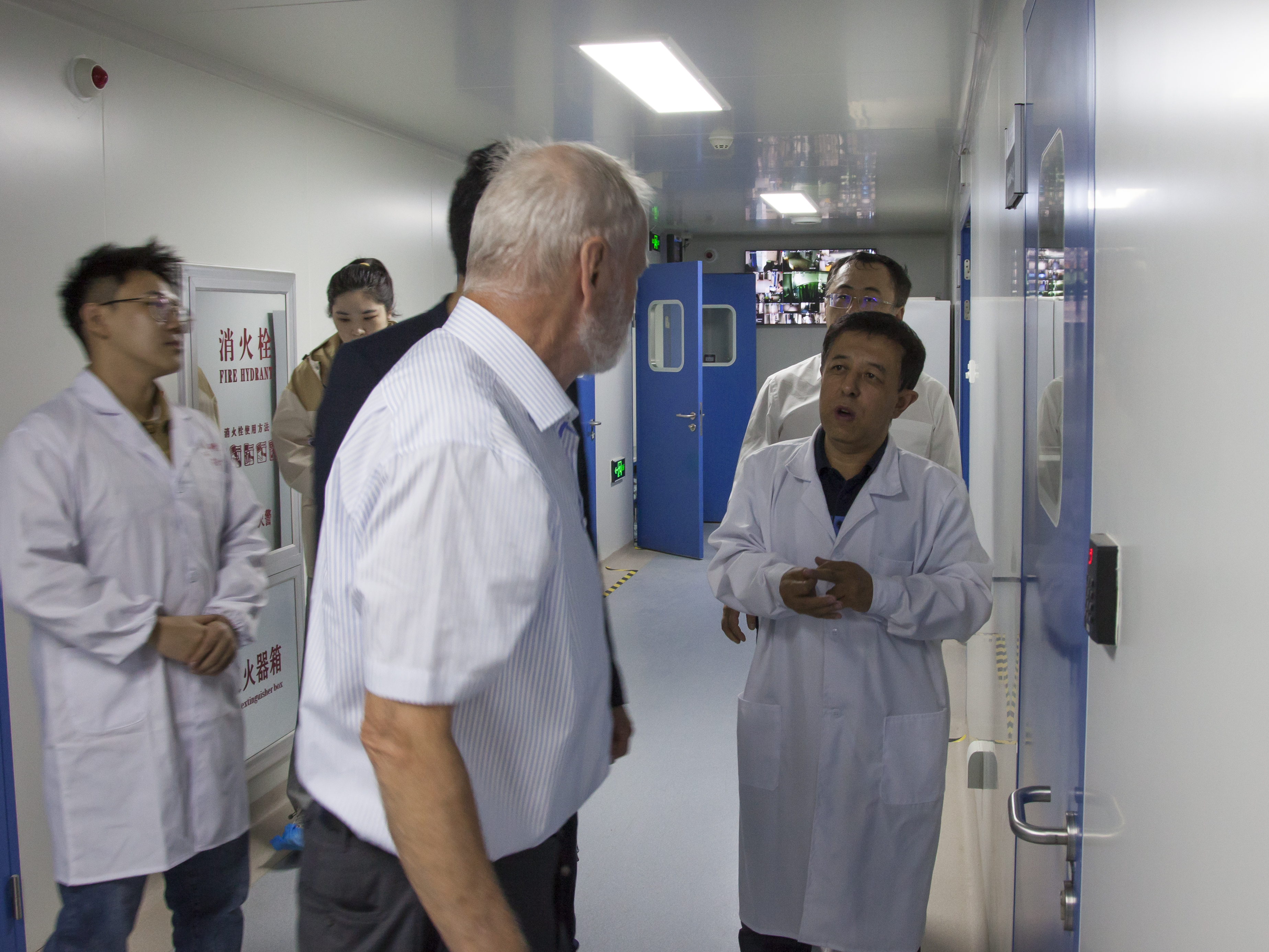 座谈会后,哈特穆特·米歇尔教授分别参观了分子酶学工程教育部重点实验室、艾滋病疫苗国家工程实验室和实验动物中心。分子酶学工程教育部重点实验室主任李全顺、艾滋病疫苗国家工程实验室教授吴慧和实验动物中心研究员王德利分别进行了细致讲解,就公司实验室科研进展、实验室建设、实验教学特点等方面与米歇尔教授进行交流与探讨。