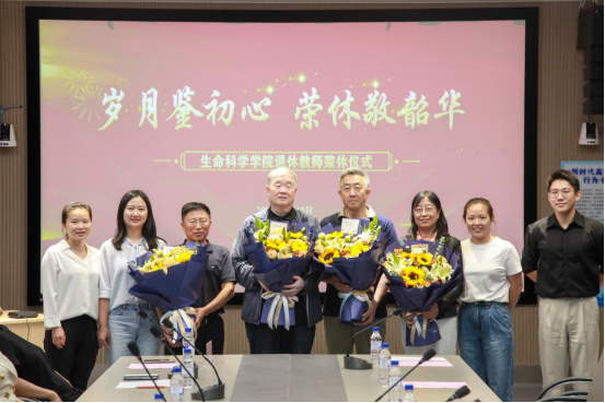 郑琳宣读荣休教师名单,于湘晖为退休教师颁发荣休证书,白宇为荣休教师颁发纪念品,教师代表杨洁、郭野、韩浩博、杨雪薇为荣休教师献花。