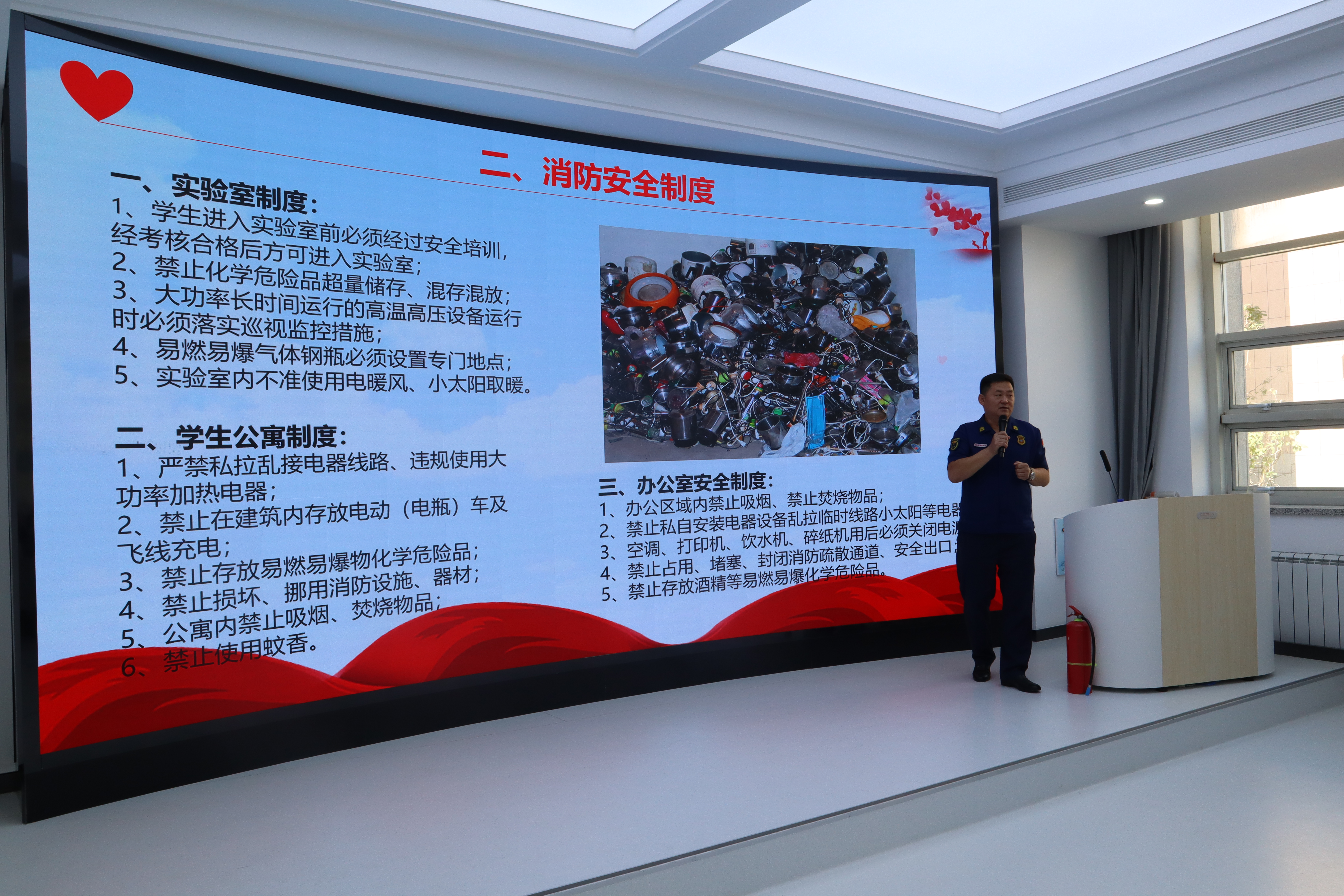 最后,副书记林相友在总结发言中指出,近年来实验室安全事故时有发生,研究生同学们要重视消防安全,保护自身生命财产安全,平安度过科研时光。本次消防安全教育让研究生新生充分认识到消防安全的重要性,掌握了消防知识,给研究生在校科研生活奠定了坚实基础。