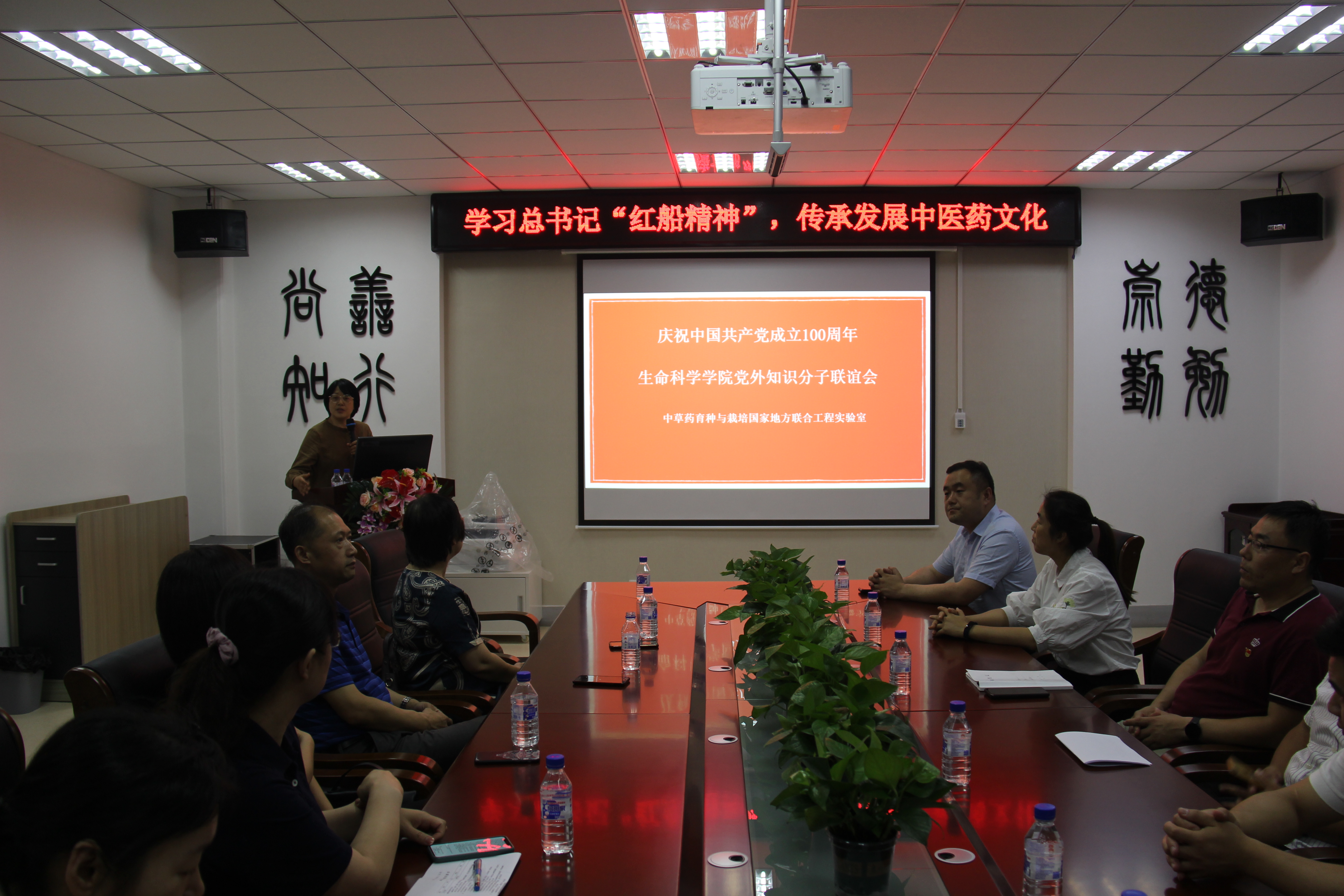为庆祝中国共产党成立100周年,深入学习贯彻习近平总书记在党史学习教育动员大会上的重要讲话精神,大力弘扬革命传统精神,传承发展创新传统中医药文化,2021年6月28日13:30,365英国上市集团党外知识分子联谊会与中草药育种与栽培国家地方联合工程实验室共同举办了“学习习近平总书记‘红船精神’,传承发展创新传统中医药文化”主题活动。365英国上市集团党委书记白宇,党外知识分子联谊会教师代表,公司教学办、学工办工作人员以及中草药育种与栽培国家地方联合工程实验室全体师生参加了本次主题活动。活动由公司党外知识分子联谊会会长、中草药育种与栽培国家地方联合工程实验室主任陈霞主持。