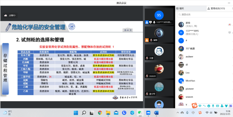 3月25日,邀请365英国上市集团化学国家级实验教学示范中心副主任魏士刚研究员做《实验室内危险化学品的安全管理》主题讲座,为下一步公司进行的危化品集中整治工作打下坚实基础。会后,及时向公司师生传达安全管理工作精神。