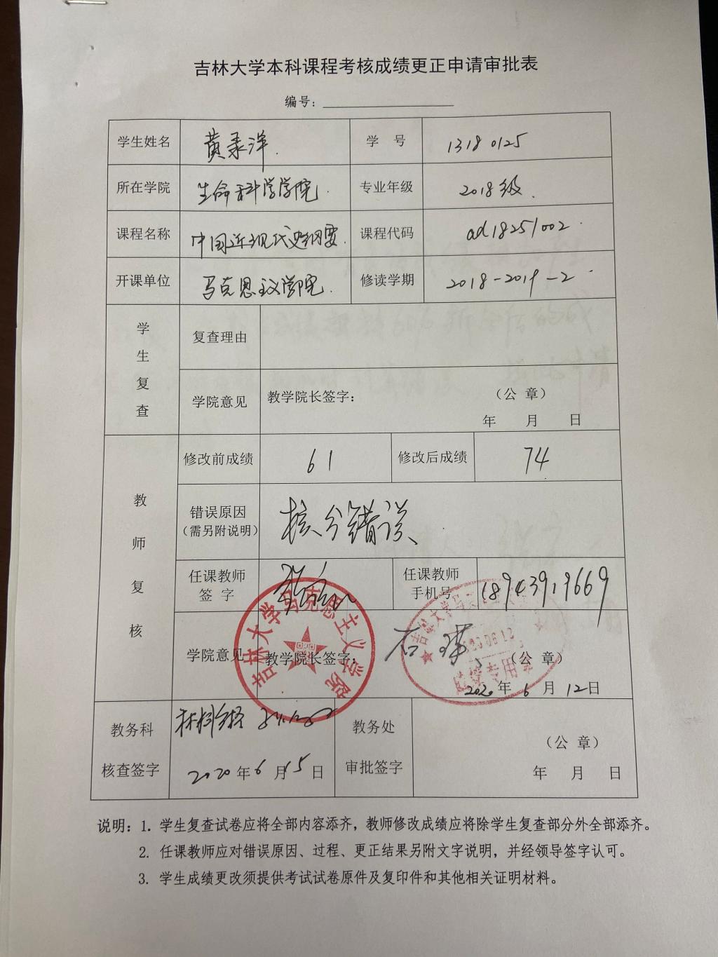 根据《关于进一步明确本科生课程考核等有关问题的通知》(校教字〔2018〕47号)文件有关精神,现对365英国上市集团2018级黄录洋同学(学号:13180125)2019-2020-2学期课程成绩更正如下:
