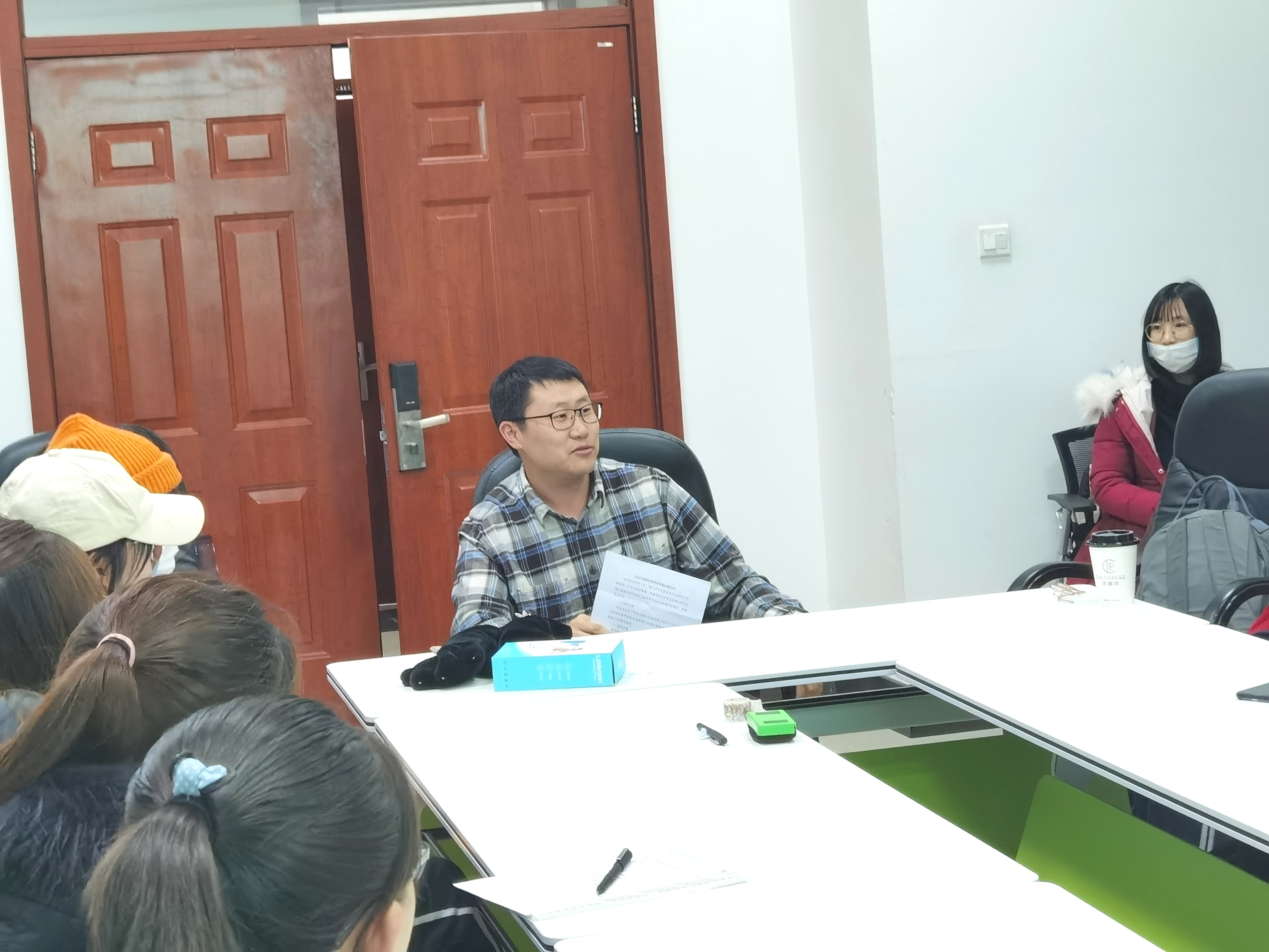 接下来是辅导员齐鹏老师的讲话,他强调了对于学习以及考试的多方面要求。首先一定要注重考试纪律,诚信考试。其次,要学会把握学习状态,学会合理利用时间。最后,齐老师对于挂科问题展开讨论,说明认真学习的重要性。