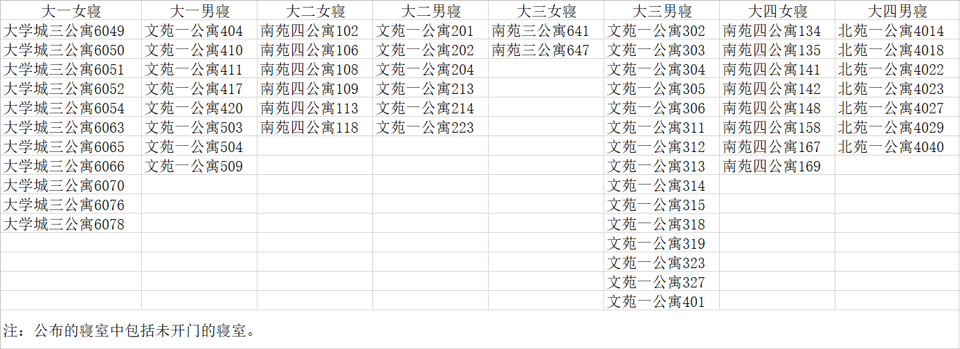 为了让同学们更加重视寝室安全卫生问题,现将需要进一步整改的寝室公布如下,希望能及时调整,也请其他同学引以为戒: