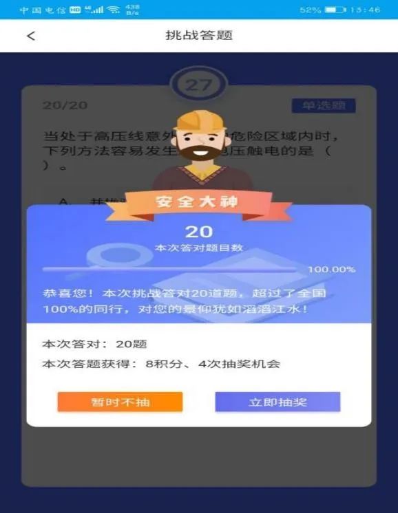 为增强同学们的安全意识,提高生产生活中的安全水平,提高同学们的安全素养,公司于2020年6月组织同学们参与了全国安全知识网络竞赛。