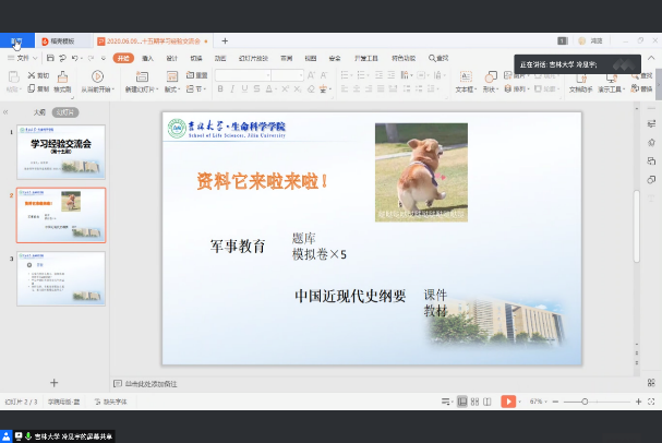 冷思宇学姐在6月10日下午与一班的同学们进行了交流。在会议上,学姐分享了复习经验和备考策略,尤其是本学期的两门线上考课程近现代史纲要和军事理论,此外还分享了理科的一些学习方法,指出C语言课程难度大。在同学们的自由提问环节,学姐告诉我们要多做题,适当背题,重视书上的知识点。