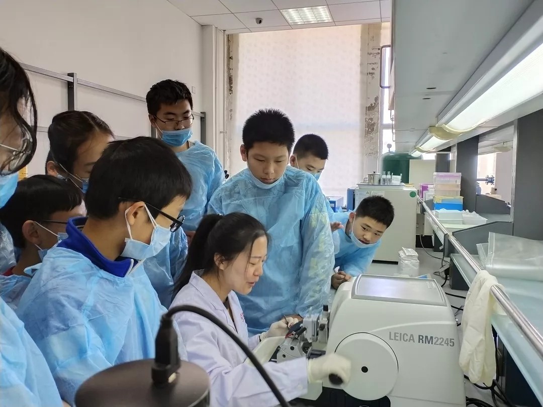 随后的实验展示环节,同学们穿戴好实验服,在志愿者的引领下,分六组进行演示互动,包括质粒DNA提取实验、细胞表达荧光蛋白及噬斑实验、石蜡切片的制作、小鼠转棒与握力实验和小鼠水迷宫实验等演示实验。实验室老师们悉心指导,同学们积极动手参与,体验了生命科学的奇妙与乐趣。