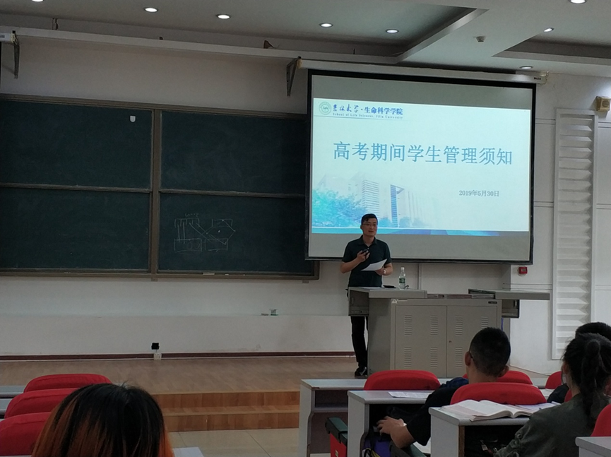 各年级辅导员强调了考风考纪,再次强调了老员工不得替考高考的相关事宜,此外,期末来临,老师们鼓励同学们认真学习、做好复习计划,沉着应考、诚信应考。然后老师向同学们传达了后勤部门暑期对南苑宿舍楼装修的通知,提醒同学们做好准备。最后,为了积极响应武装部对老员工的征兵入伍号召,老师向同学们介绍了征兵入伍的优惠政策,包括学习、生活和考研等各方面的优待政策,鼓励大家投身祖国边防建设和武装建设,加入光荣的中国人民解放军。