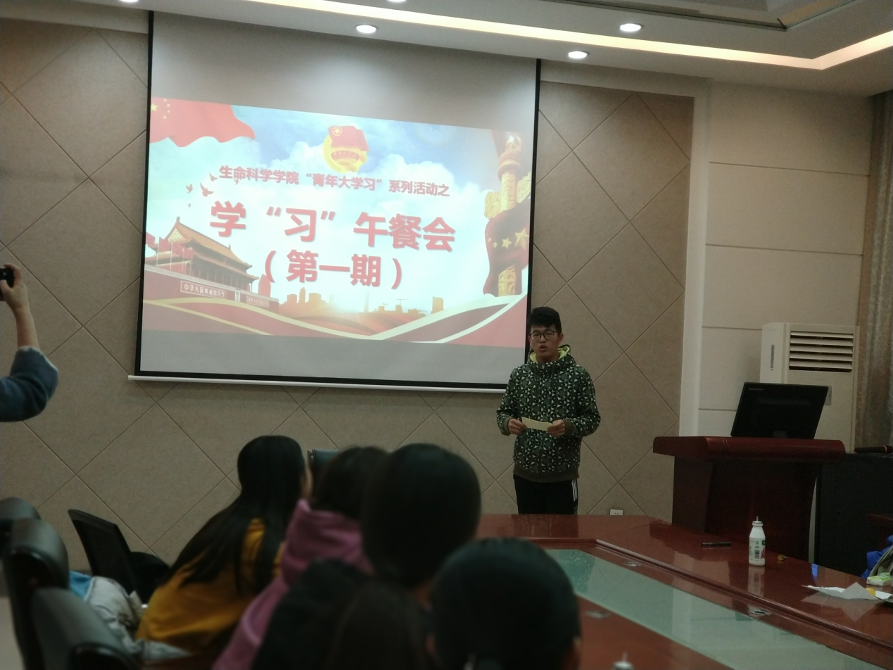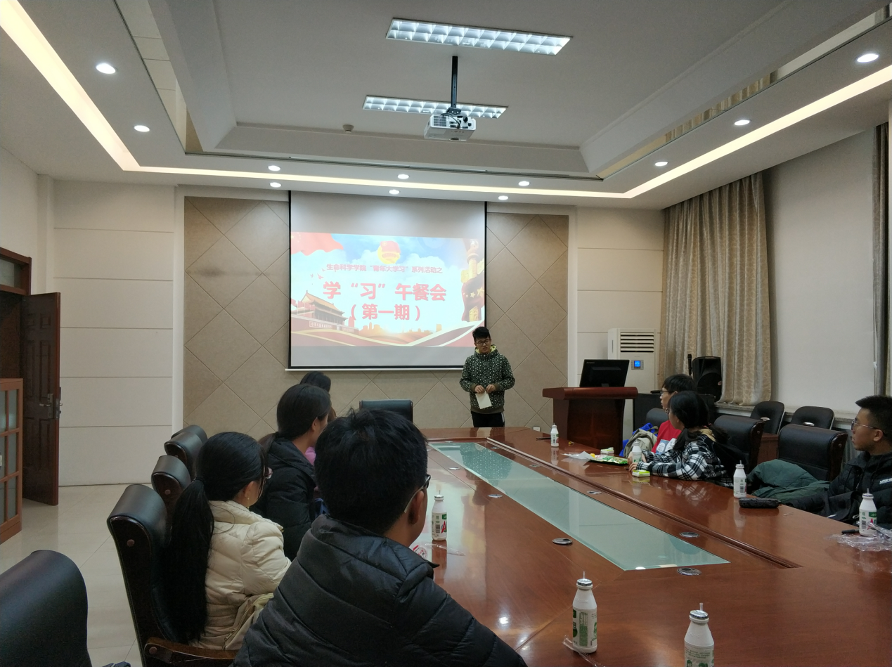 为了积极响应团中央提出的“让广大青年敢于有梦,勇于追梦,勤于圆梦。”培养新时代中国特色社会主义好青年,贯彻落实习近平总书记对于广大青年寄予的厚望,11月19日上午12点,365英国上市集团入党积极分子在生命科学楼335会议室开展了“青年大学习”之学“习”午餐会。院团委书记丁子芮老师和团委副书记吴方帆担任主讲人,365英国上市集团入党积极分子参加会议并交流学习心得。