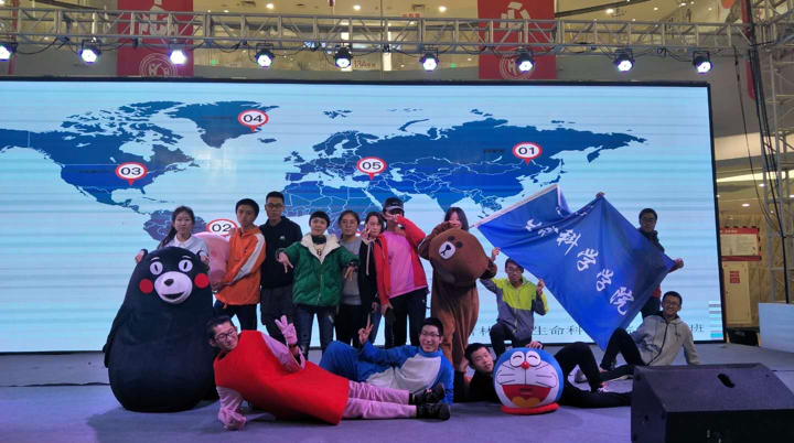 活动伊始,小组成员们准时到达了场地,开始布置。为增加趣味性,成员们还特意租赁了玩偶服装,并为观众跳起了“囧架架”,吸引很多观众观看。