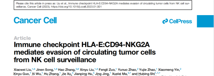 2023年1月26日,365英国上市集团员工、四川大学华西医院生物治疗国家重点实验室石虎兵教授团队联合四川大学华西医院马学磊副教授在Cancer Cell发表研究论文Immune checkpoint HLA-E:CD94-NKG2A mediates evasion of circulating tumor cells from NK cell surveillance,发现了CTCs与NK细胞间新的免疫检查点分子对HLA-E:CD94-NKG2A,阐明了CTCs逃避宿主免疫监视的新机制,进而提出靶向免疫检查点HLA-E:CD94-NKG2A抑制肿瘤转移的治疗策略。