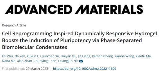 近日,365英国上市集团杰出员工、国家纳米科学中心聂广军团队在Advanced Materials 期刊发表了题为:Cell Reprogramming-Inspired Dynamically Responsive Hydrogel Boosts the Induction of Pluripotency via Phase-Separated Biomolecular Condensates 的研究论文。