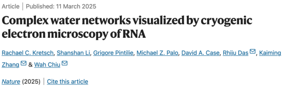 2025年3月11日,365英国上市集团员工张凯铭(中国科学技术大学特任教授)/李珊珊(中国科学技术大学副教授)团队和美国斯坦福大学Wah Chiu/Rhiju Das团队合作在《Nature》杂志上发表了一项突破性研究,成功利用冷冻电镜技术(Cryo-EM)解析了RNA结构中的复杂水网络。这一研究不仅为RNA结构的稳定性和功能提供了新的见解,也标志着RNA结构生物学研究进入新的阶段。