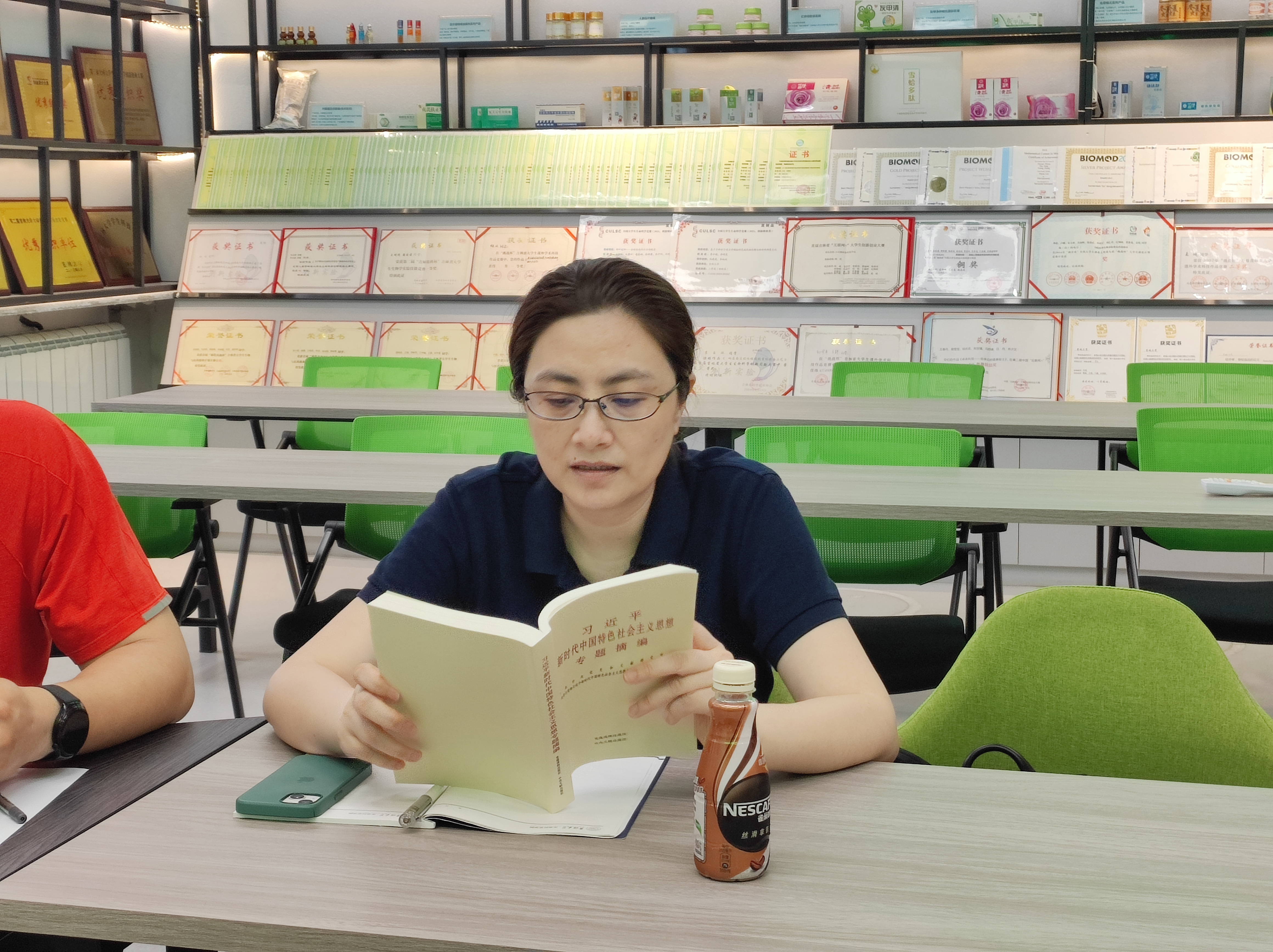 副经理陈妍领学《习近平新时代中国特色社会主义思想专题摘编》专题六——实施科教兴国战略,强化现代化建设人才支撑。她表示,我国科研事业挑战与机遇并存,要掌握自主创新、自立自强的主导权,把握新一轮科技革命和产业革新的时机,赢得主动、赢得未来;要坚持科教兴国战略,创新驱动引领,积极开展校企合作,锚定服务地方经济社会,不断塑造发展新动能新优势。