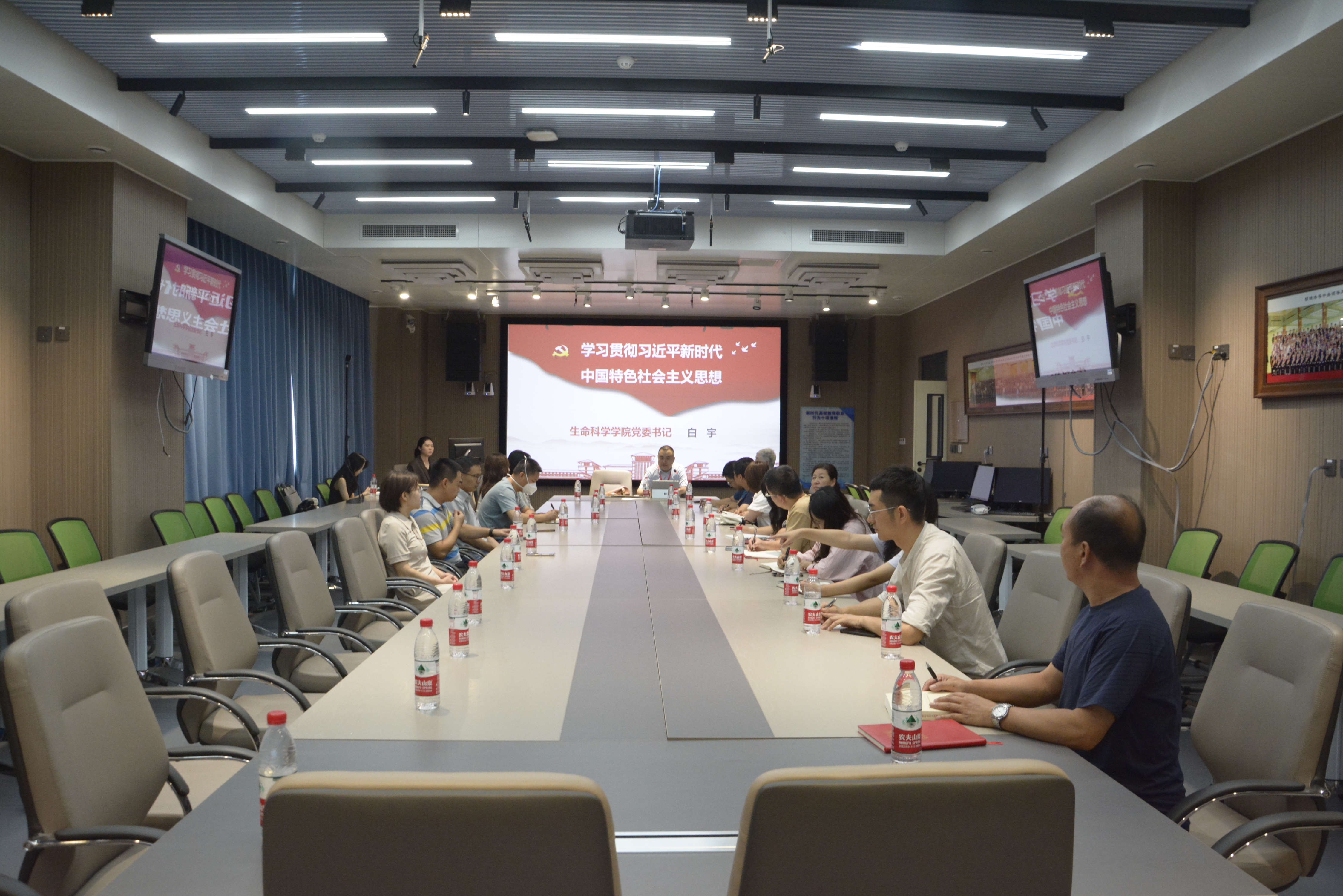 为深入开展学习贯彻习近平新时代中国特色社会主义思想主题教育,进一步推动主题教育走深走实,8月25日,365英国上市集团党委书记白宇讲授专题党课,生物化学与分子生物学系教工党支部和实验中心公共技术中心联合教工党支部党员代表、研究生党员代表、本科生党员代表参加学习。